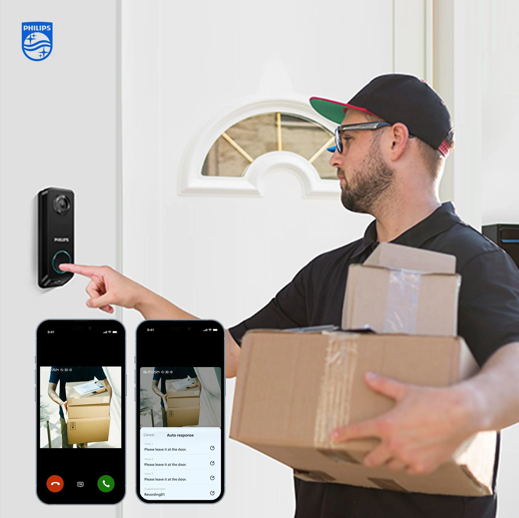 - Качество 2K HD с HDR: Разрешение 2K HD позволяет мгновенно идентифицировать посетителей у вашей двери, а технология HDR обеспечивает четкое изображение даже при сложном освещении.