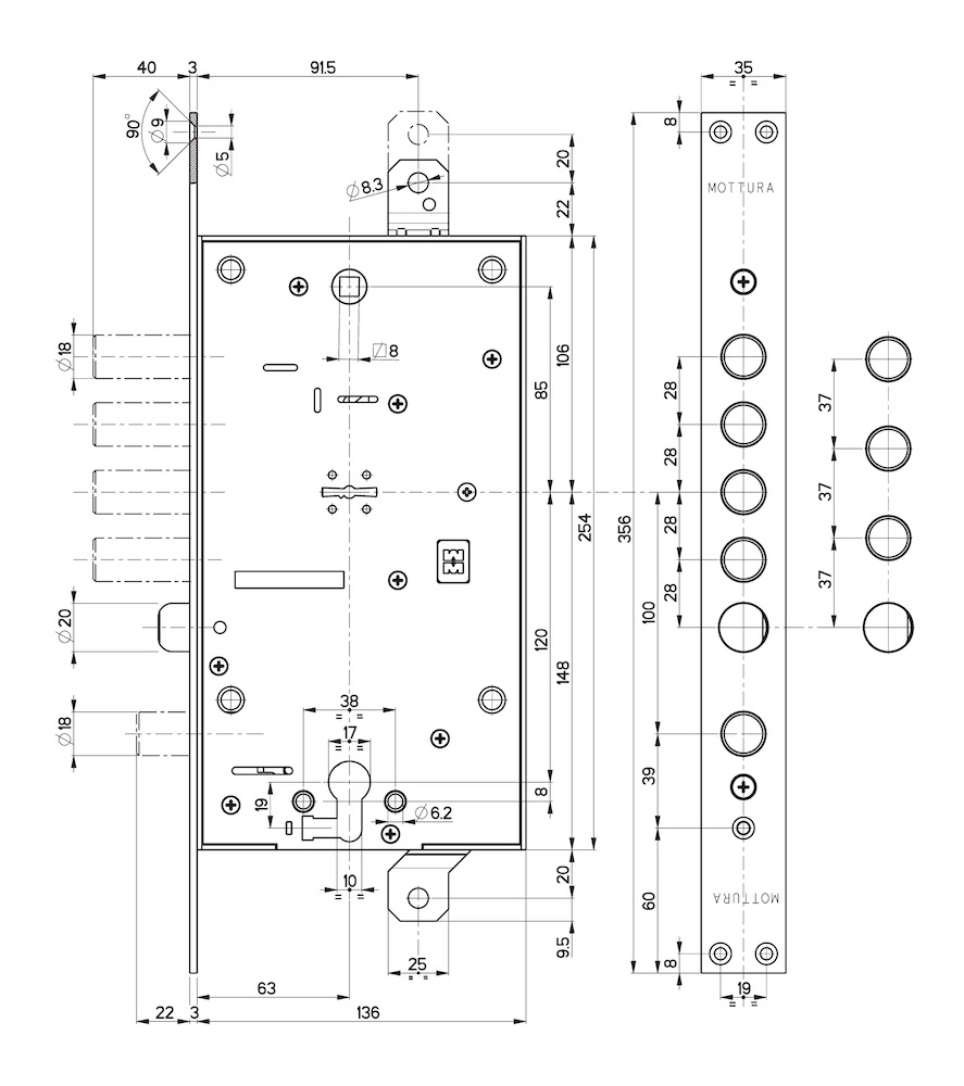 Замок врезной двухсистемный Mottura 54.787 56