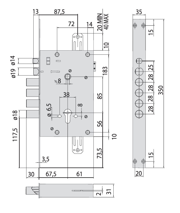 Описание CISA 15535 Размер: 399,8 кбИнструкция CISA 15.535 Размер: 420,2 кб - Вылет ригеля: 30 мм