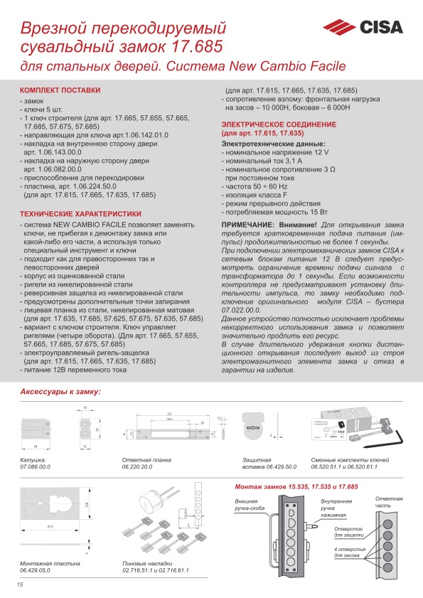 Описание CISA 17.685 Размер: 153,6 кб - Вылет ригеля: 30 мм