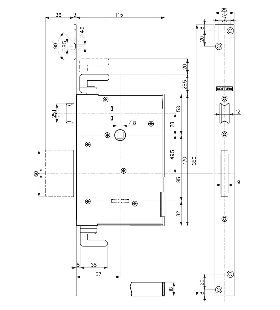 Расстояние до ключевого отверстия (бэксет) - 57 мм