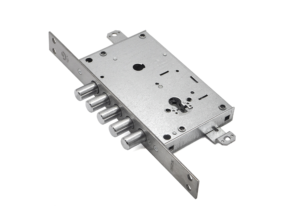 Замок оснащен дополнительной защитой SECURTINA. Эта запатентованная система обеспечивает защиту замка при силовом воздействии. Срабатывает блокирующий элемент ригельной группы и не позволяет ей двигаться.