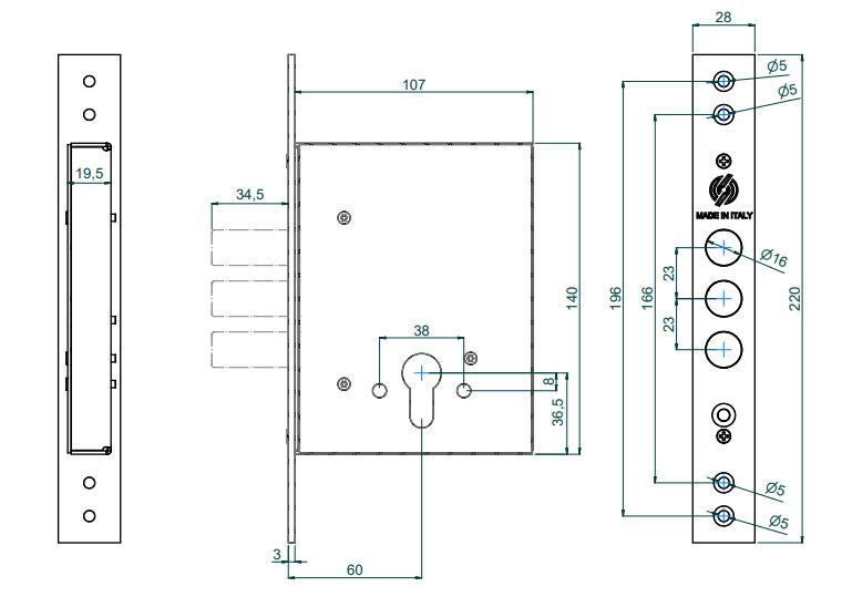 ОписаниеЗамок цилиндровый Securemme 2069 по посадочным размерам аналог цилиндрового замка Kale 257.