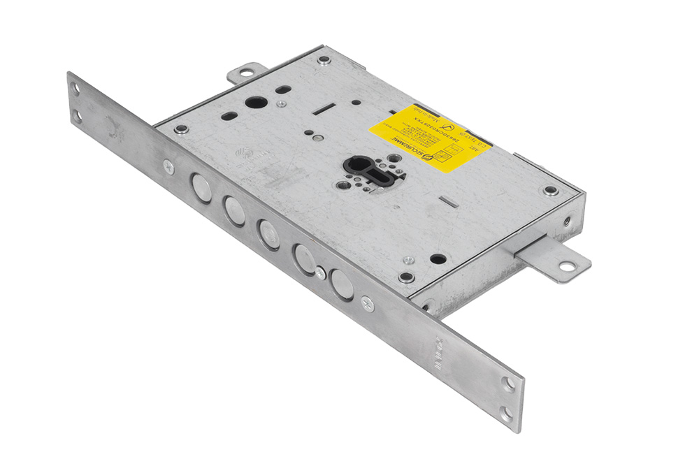 Замок оснащен дополнительной защитой SECURTINA. Эта запатентованная система обеспечивает защиту замка при силовом воздействии. Срабатывает блокирующий элемент ригельной группы и не позволяет ей двигаться.