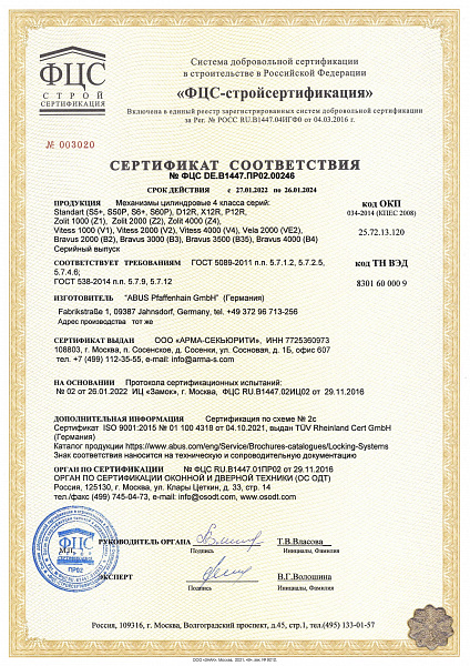 Компания ABUS Пфаффенхайн ГмбХ, одна из немногих, добровольно сертифицировала свою продукцию.